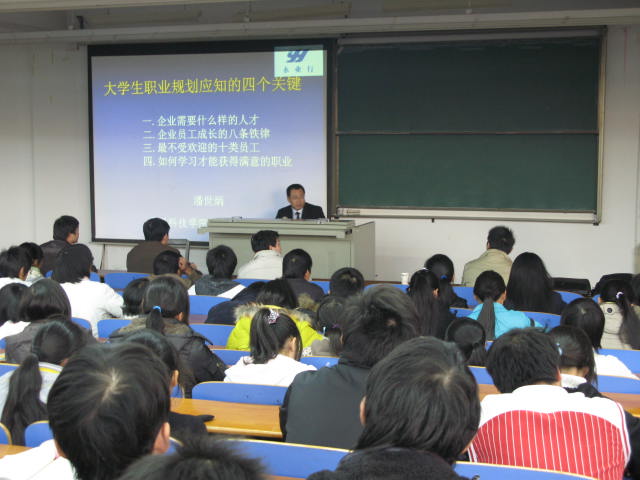 11月24日,永业行总裁、武汉科技学院客座教授潘世炳博士应邀到武汉科技学院,为近300名大学生做了题为《大学生职业规划应知的四个关键问题》的讲座,从企业到底需要什么样的大学生、企业员工成长的八条铁律、不受欢迎的十类员工以及大学生如何为满足社会需要来学习等四个方面进行了分析、讲解,并回答了大家的提问。